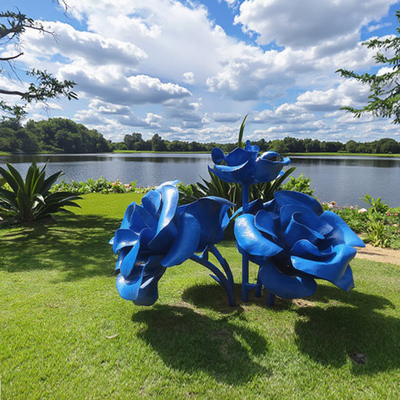 Bu büyük boyalı mavi çiçek gül heykelleri, sanat ve doğanın çarpıcı bir karışımıdır. Bahçe gölünün yanına yerleştirildiklerinde, yeşil çimenlerin ve sakin suyun üzerinde canlı bir şekilde öne çıkarlar. Parlak mavi tonu, bahçeyi hem sanatın hem de doğal çevrenin güzelliğini takdir edebilecek insanların bulunduğu sanatsal bir sığınağa dönüştürerek bir fantezi ve canlılık dokunuşu getirir..