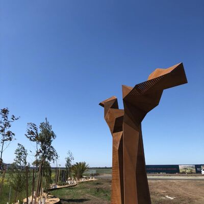 Farklı hava koşullarına dayanıklı çelikten üretilen bu heykel, bir yılanın dinamik formunu yakalar. Dış mekan kurulumu için tasarlanan çarpıcı silueti ve gelişen pas-patina kaplaması, gözü çekecek güçlü bir görsel ifade yaratır.