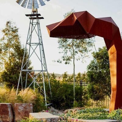 Malzeme Faydası: "Gelişen pas-patina kaplaması", hava koşullarına dayanıklı çeliğin benzersiz görsel çekiciliğini (kendi kendini koruyan, renk değiştiren pas) açıklar.